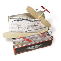 With over 35 parts (balsawood wings, rudders, propellers, rubberband motors, wheels, etc), contained in a travel case so that you can design and fly from anywhere!. Design it! Build it! Fly it!
