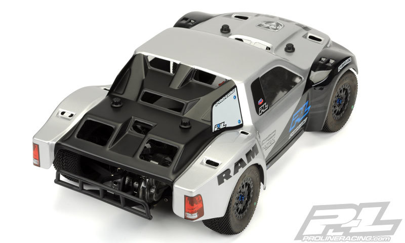 This is a RAM 2500 Clear Body for SC Trucks. Attention all RAM fans! Pro-Line has finally delivered the meanest body ever created for your Short Course truck: The RAM 2500. The Bold RAM front grille screams for intense off-road action and tells everyone to get out of your way! The huge fenders allow clearance for the biggest and baddest Pro-Line tires and will give your truck the tough look you have been waiting for. The RAM SC body features the latest in Pro-Line Flo-Tek EVO technology with tons of air-vents that will keep your truck flying low and stuck to the track. This highly anticipated Short Course body is officially licensed through RAM and is brought to you by Pro-Line. Be the first at your track to represent Pro-Line’s RAM 2500 SC body – Get one today!