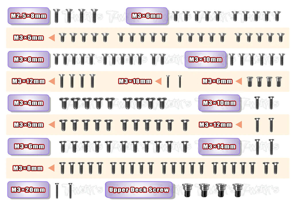 TWORKS 64 Titanium Low Profile Screw set 127pcs.( For Xray X4 2023 ) TSS-X4'23-LP