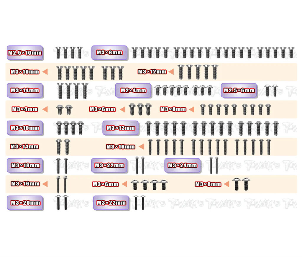 TWORKS 64 Titanium Screw Set 119pcs ( For Associated B7/B7D) - TSSU-RC10B7