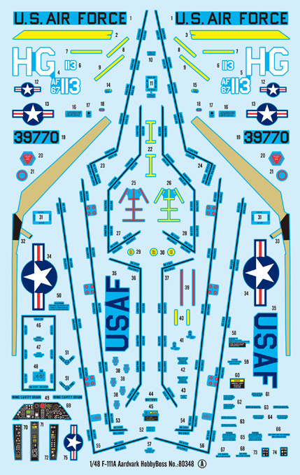 The F-111 Aardvark was designed as a all-weather multi-role aircraft by the General Dynamics . It was the result of the requirement in the 1960s for a long range interceptor to US Navy and deep-strike interdictor to USAF, but the Navy versions was failed,, so the project ended as an strike aircraft. The F-111 with a Features as twin-seat,twin-power, wing-wing, a semi-monocoque aircraft, First flight 21 December 1964. first production F-111s were delivered on 18 July 1967. the F-111s total Production was 563 aircraft. F-111A is the early Variants of the F-111 Family, 158 F-111A was built.